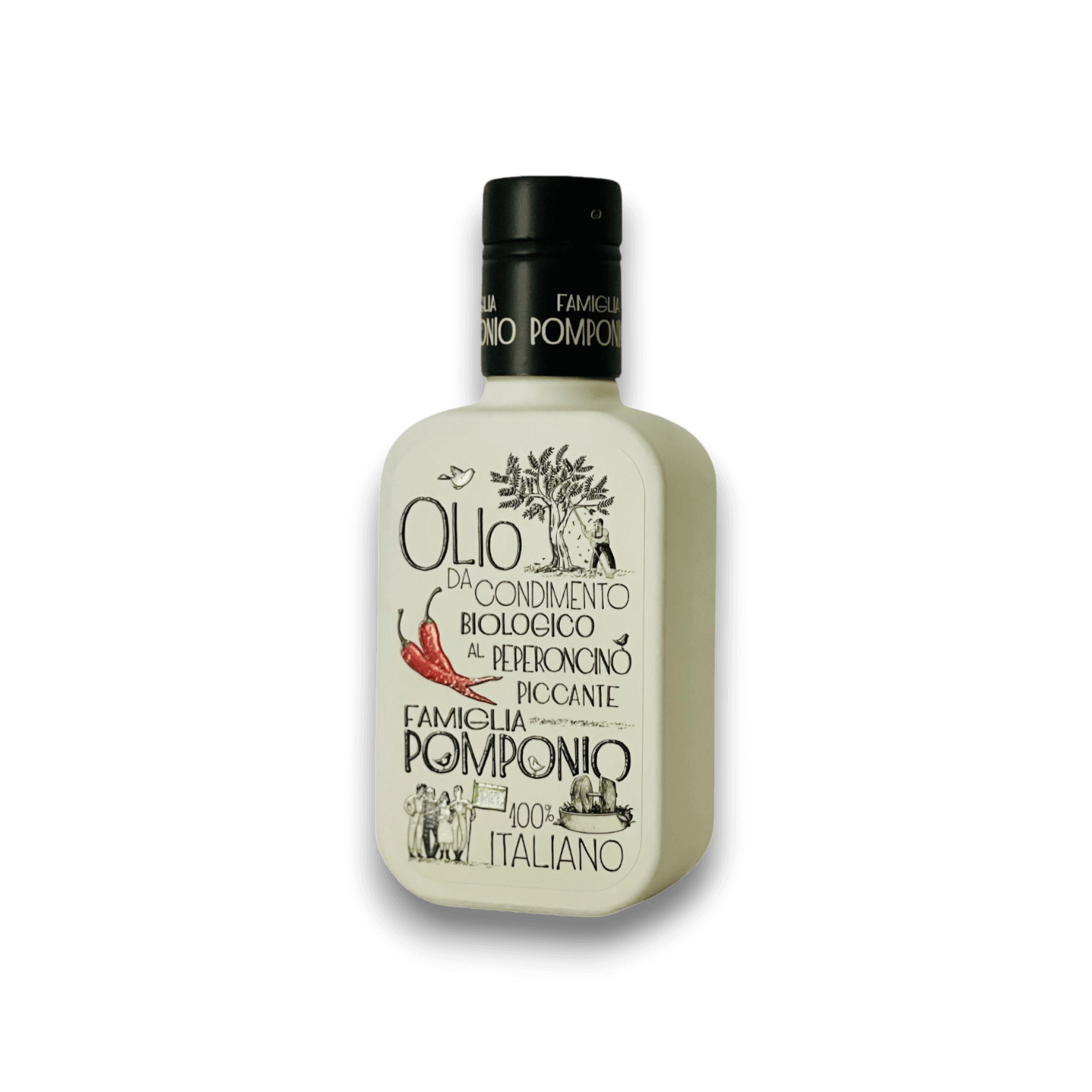 Un condimento essenziale, che unisce la solidità dell’olio EVO alla vivacità del peperoncino con misura e coerenza.