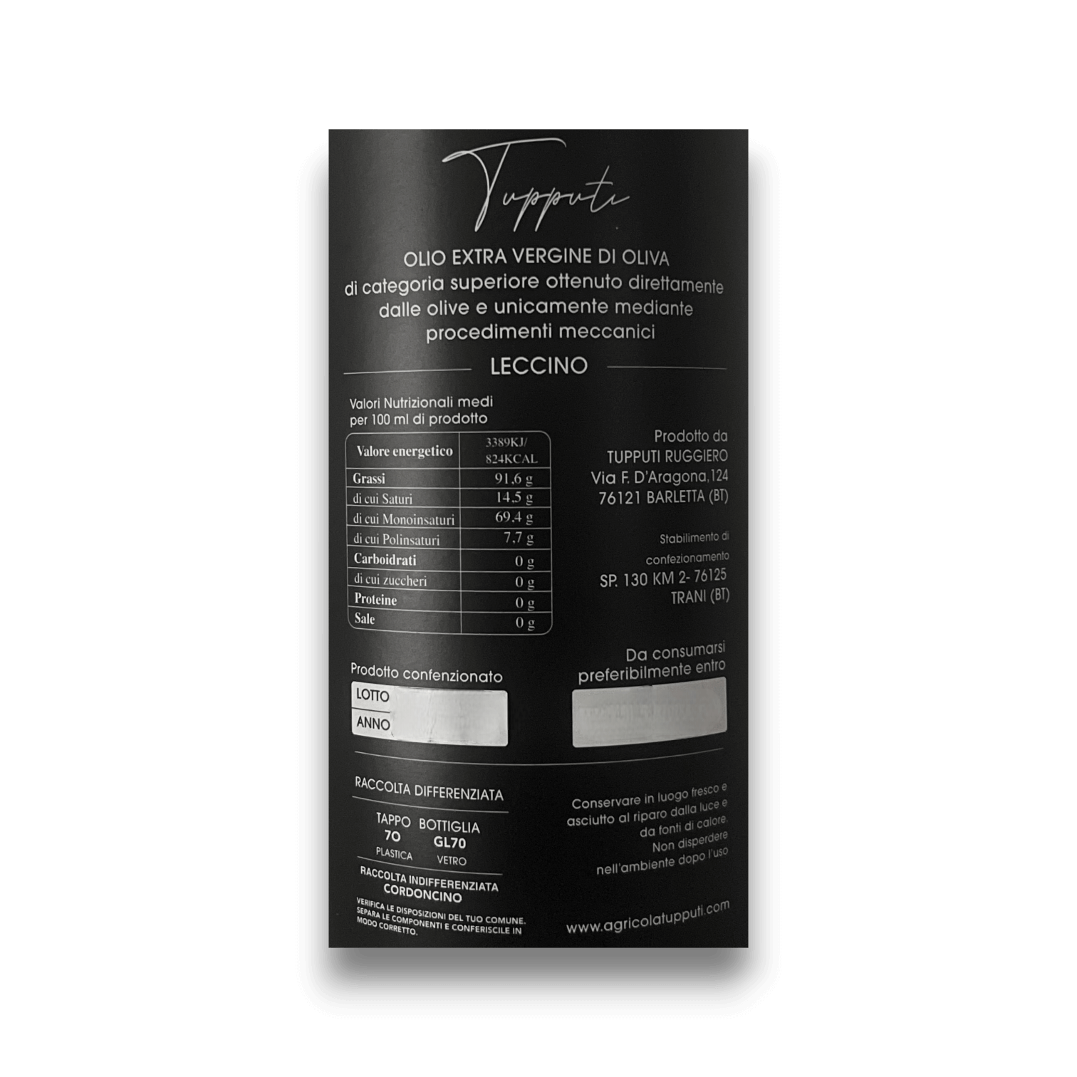 Un Olio EVO sobrio e affidabile, che interpreta il carattere del Leccino con misura e coerenza.